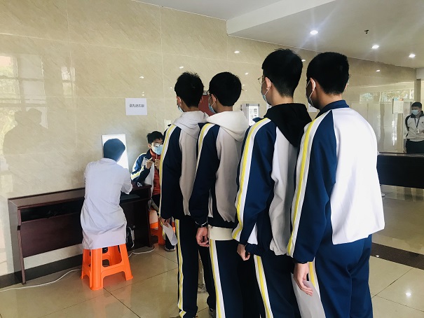 新冠疫情常态化下,考试院对体检场所进行全程闭环式管理,学生从体育馆到体检场所的往返路线,严格按照医护人员的指导执行,体检场所所有工作人员以及考生须全程佩戴口罩,病、残考生我们提供“绿色服务”通道。